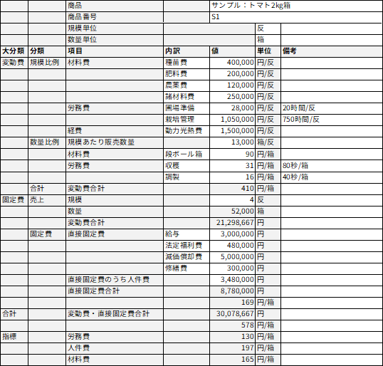 たとえば「米1俵に○円」とか「ほうれん草1袋に○円」といったように、商品を製造・販売するのにかかるコストを概算し、利益がどの程度出ているのか、課題がどこにあるのかといったことをあぶりだします。